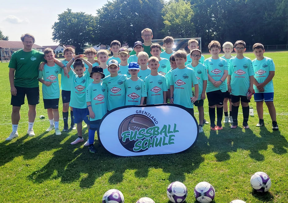 Vom 14.07.2025 bis 17.07.2025 fand auf unserem Sportplatz das dritte Fußball-Sommercamp mit der Fußballschule Grenzland statt. Insgesamt 24 fußballbegeisterte Kinder im Alter von 6 bis 13 Jahren nahmen teil – nicht nur aus unserem Verein, sondern auch aus den umliegenden Clubs.